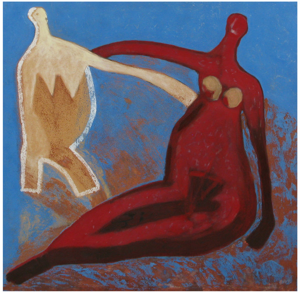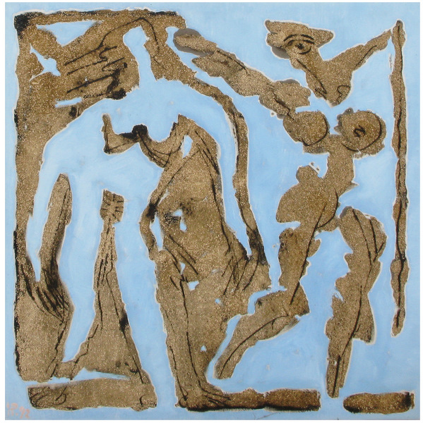 En el Kaamp-Hüs en Sylt, Ramona Dreessen organizó una amena y encantadora muestra conjunta de obras de varios artistas. El tema era erotismo, un tema que a todos los humanos nos resulta incansablemente fascinante. Es atemporal y altamente individual – erotismo es algo ante lo cual todos tienen una actitud diferente. Precisamente ésto es lo que hizo interesante la exposición Erotic Island – 5 artistas, 5 formas completamente diferentes de entender e interpretar el tema. La exposición incluía dibujos de Jo Gesing, cuadros de Sabine Jesse-Kniesel, fotografías de Olaf Krönke y Jan de Wit y varios cuadros increíbles de Herman. La mayoría pertenecen a una serie que pintó a principios de los 90 en Mallorca. Son figuras vibrantes y coloridas inmersas en bailes extáticos e imágenes intensas y vivas de la interacción humana, hechas con fuertes pigmentos, arena y otros materiales poco comunes.