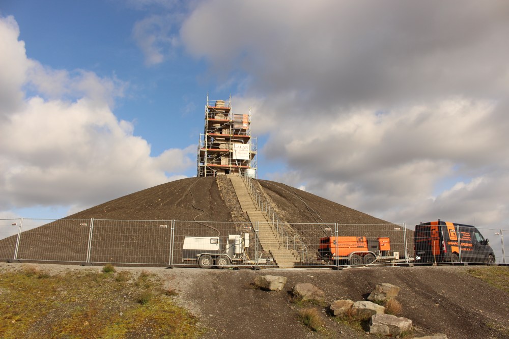 Das Graffiti schon lang ein Problem für die Himmelstreppe darstellt ist bekannt, es ist für die Kunst im öffentlichen Raum immer so, aber das jemand in einer Nacht und Nebel Aktion die gesamte Skulptur (110m!) mit silberfarbenen Lack besprüht hatte war neu.